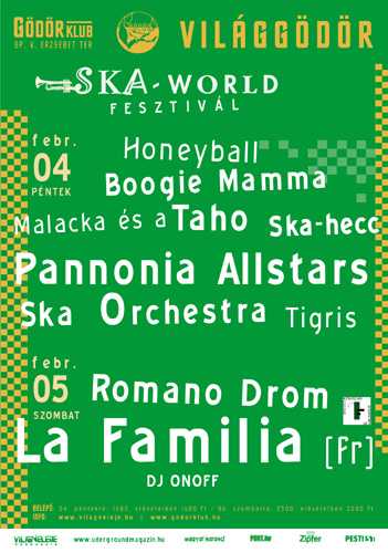 | Boogie Mamma, Malacka és a Tahó, Honeyball, Tigris, Pannonia Allstars Ska Orchestra