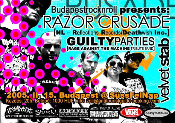 |  | Velvet Stab - oké, Guilty Parties - nekem nem oké, h ha egy zenekar tribute, a közönség nagyobb része miattuk jött! Razor Crusade - Már láttam őket, lassú számok annyira nem ütősek, és a tömeg is elvonult haza, kár mert biztos szarul érezték magukat ...
